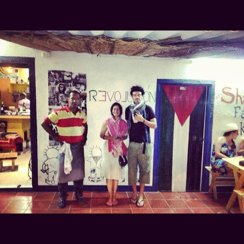 Olhei na minha memória para me lembrar que a palavra REVOLUCIÓN estava escrita diferente.  Tinha a palavra LOVE destacada no meio, só que ao contrário e em vermelho. Sorri. Ali na terra onde o amor foi tão subversivo, um homem, que tinha lutado na Intifada, hoje serve comida. Ele luta pela sua causa com seu restaurante, alimentando gente, trazendo pessoas para conversar.