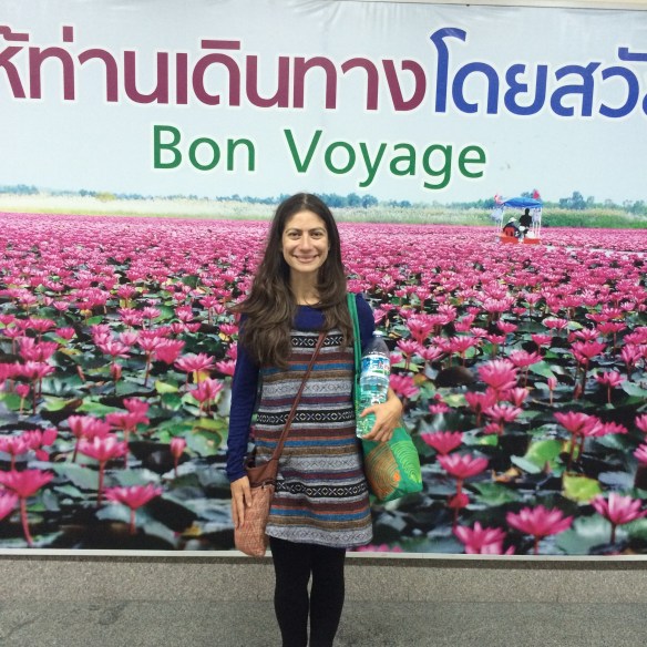Eu pego um voo de outra cidade e lá eu converso pouco como os desconhecidos. E chego no aeroporto Internacional de Bangkok as 8:30. Meu voo para Abu Dhabi sai as 2 da manha.