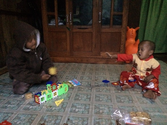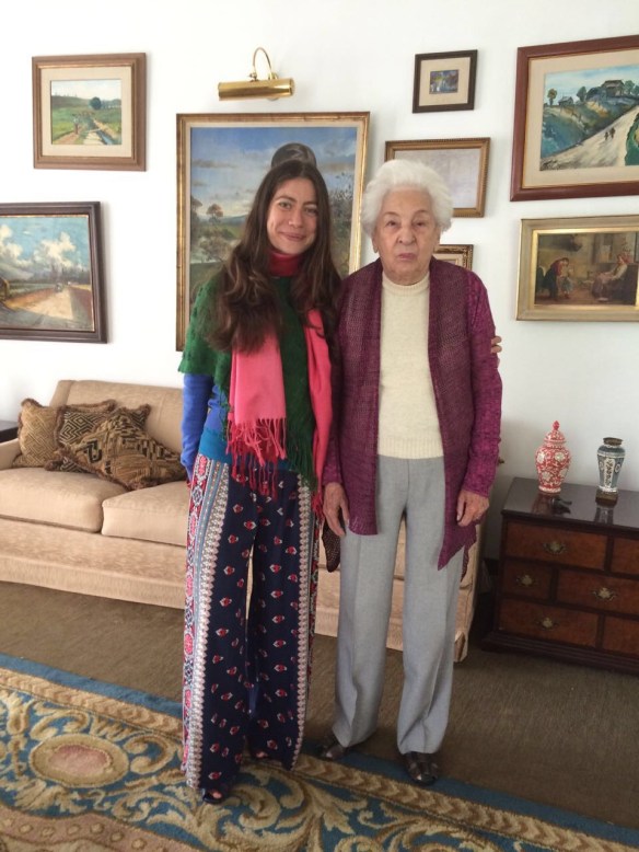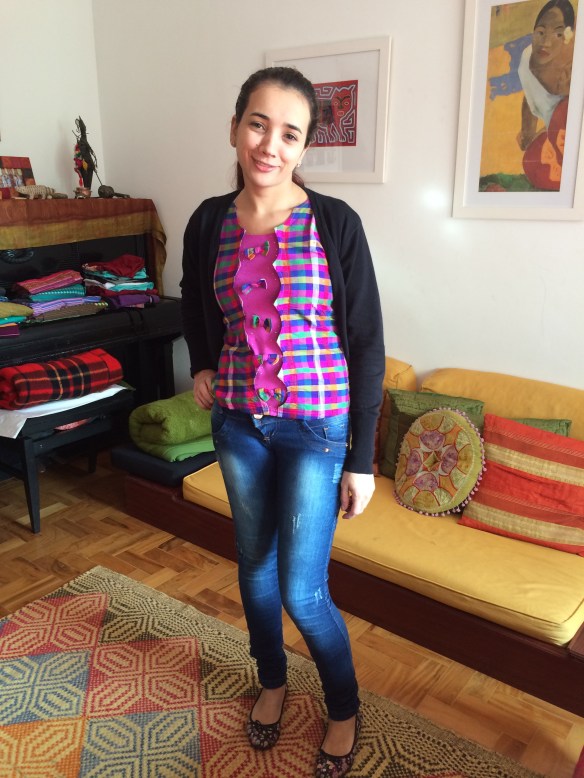 Cheguei na minha casa e a Nininha que trabalha aqui há anos, e vem uma vez por semana, veio aqui agora e já está com sua blusa da Birmania. Minha avó com seu casaco e eu coberta de cores.
